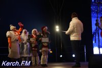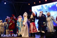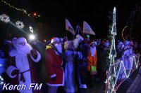 После парад прошел к главной елке города. Керчан поздравили Дед Мороз от завода «Залив», от МЧС Керчи и дед Мороз-казак. Также на сцене участники озвучили свои пожелания.
