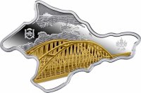 Накануне Нового года РНКБ Банк (ПАО) презентовал новую серебряную монету «Соединяем берега» в форме Крымского полуострова. Она украшена селективным золочением арочного пролета моста.