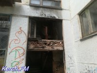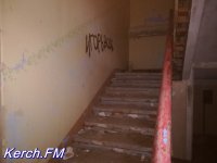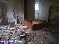 Возле самого здания, которое разбито, у которого частично рушится отделка внутри и снаружи и выбиты окна, мы увидели дымок и услышали голоса. Хотя журналисты сайта Керчь.ФМ не из робких, но мы все же не стали заходить в эту часть здания, чтобы "не испортить незваными гостями" новогодние праздники людям. Также, практически в каждой комнате видны следы огня на стенах и потолке.