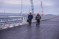 Работы по обустройству выполнены на участке моста между пятью опорами. По двум направлениям по обеим сторонам моста установлено в общей сложности 1 800 погонных метров барьерного ограждения и 28 мачт освещения. Этот участок на острове Тузла - передовой в строительстве. Здесь первыми отрабатываются все этапы реализации проекта.