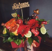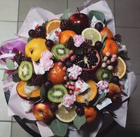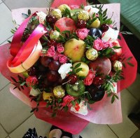 Гармоничное сочетание фруктов и цветов, кружит по-настоящему голову, и делает Вас особенным человеком, в глазах того, кого Вы осчастливите таким букетом.