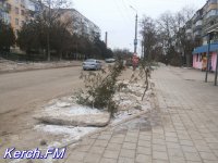 В Керчи водоканал посадил деревья в яму на автобусной остановке