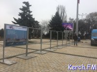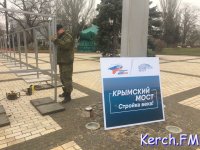 В Керчи 8 февраля на площади Ленина начали устанавливать выставку, посвященную Крымскому мосту. Журналисту  Керчь.ФМ сообщили, что в ближайшее время завершат работы.