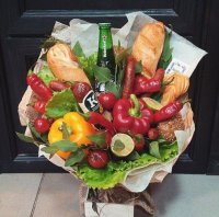 Оригинальные и вкусные мужские букеты с разным наполнением: колбасы, сыры, овощи, фрукты, фисташки, пиво и виски, зелень и многое другое!