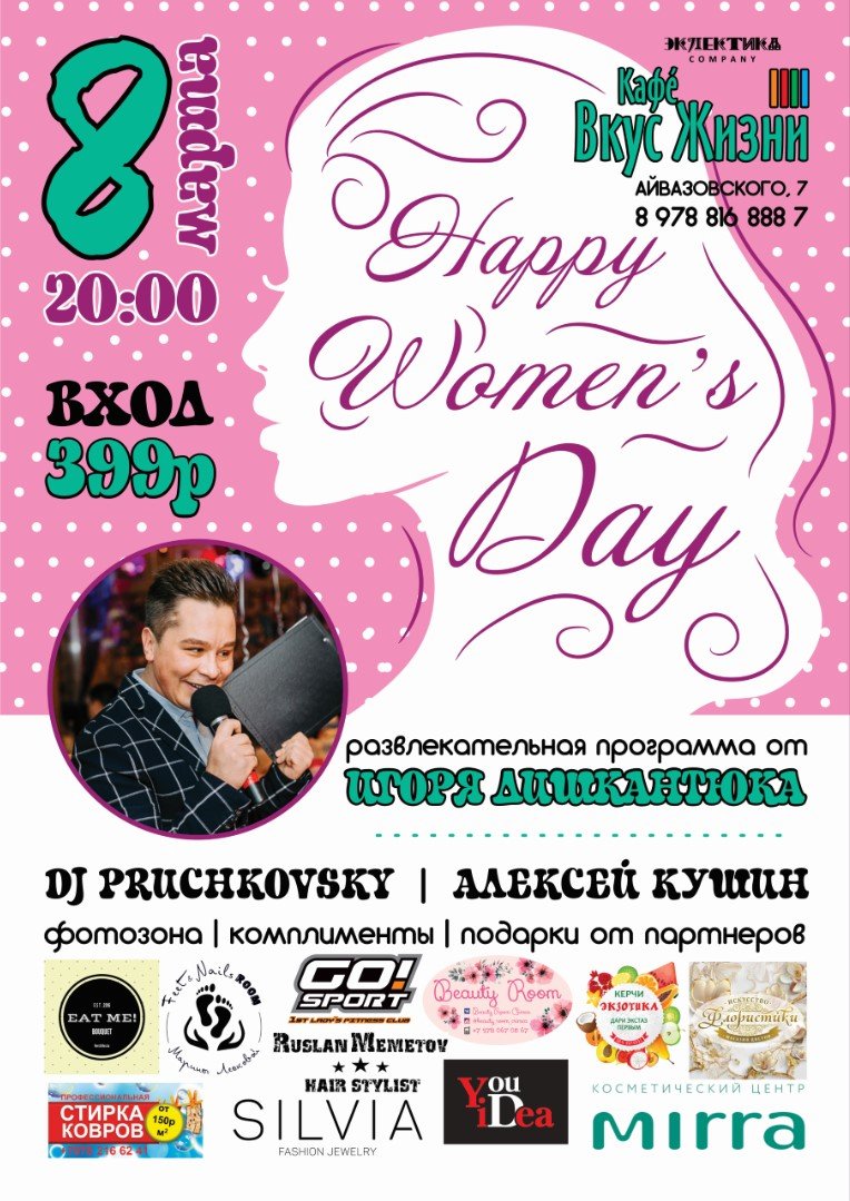 Команда кафе "Вкус Жизни" поздравляет с наступающим прекрасную половину человечества и приглашает незабываемо провести Международный женский день!