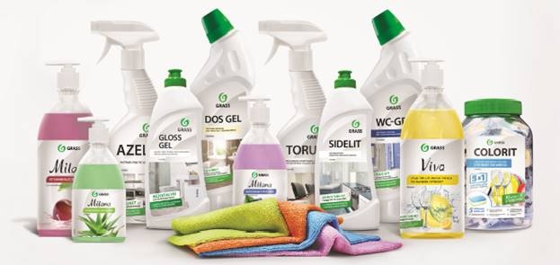 Мыло, освежители, гели для стирки, средства для уборки ванной комнаты, кухни, для очистки различных поверхностей (мебели, пола, пластика, стекол и т.д.), ковровых покрытий. Линейка химии для уборки в номерах отелей и гостиниц, а также гигиенические наборы.