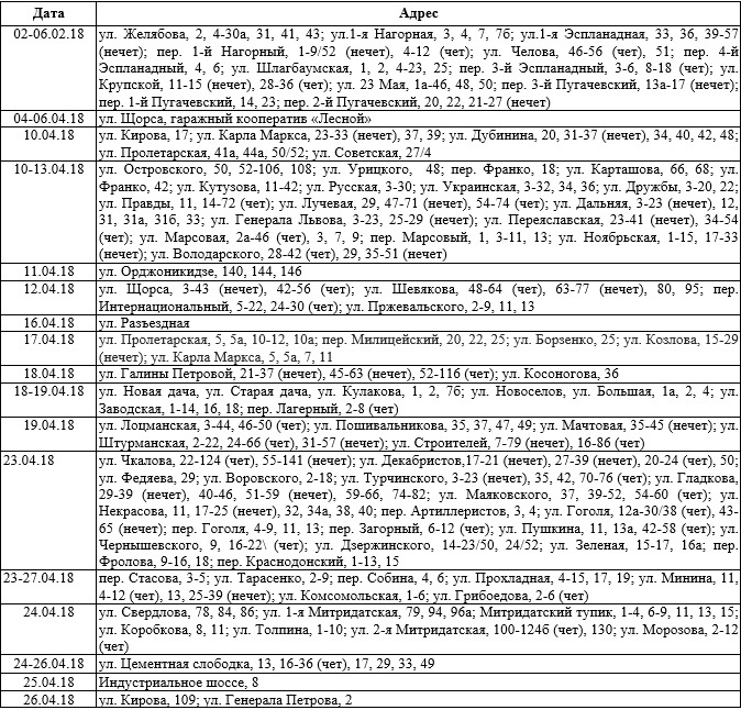 ГУП РК «Крымэнерго» сообщает о том, что в связи с плановым ремонтом электрооборудования в апреле с 8 до 17 часов будут происходить отключения линий электропередачи согласно нижеприведенному графику, - передает Керчь.ФМ.