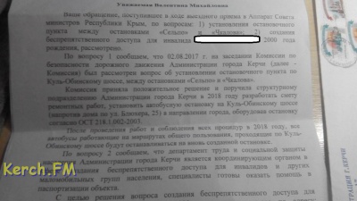 Более того, керчане по этому поводу обращались и во время выездного приема Аппарата Совмина Крыма 29 ноября прошлого года. Даже получили письменный ответ Администрации о том, что «все в работе». Также в ответе был упомянут положительный результат заседания комиссии по безопасности дорожного движения в августе 2017 года. Однако, аналогичное заседание было и 29 сентября 2016 года. Тогда эта же комиссия принимала такое же решение.