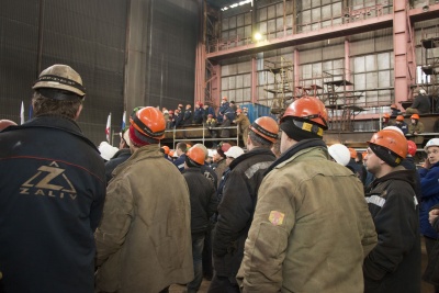 Гости посетили завод «Залив» и встретились с жителями города в большом зале дворца культуры «Корабел».