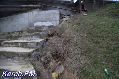В Керчи из-под опор моста на Партизанском, которые ремонтировали в 2017 году, уходит грунт. Керчане рассказали сайту Керчь.ФМ, что это, скорее всего, из-за воды, которая периодически течет в этом месте.