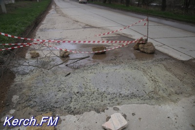 В Керчи, на участке дороги от завода «Залив» до ж/д переезда забетонировали яму на дороге. Как передает корреспондент Керчь.ФМ, место огородили камнями, ветками и предупреждающей лентой.