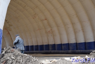 В Керчи над ледовым катком возвели купол. Строители продолжают проводить ремонтные работы, - передает Керчь.ФМ