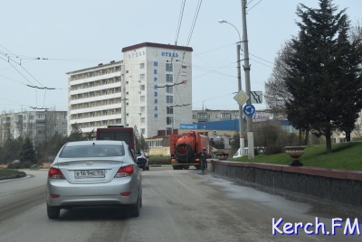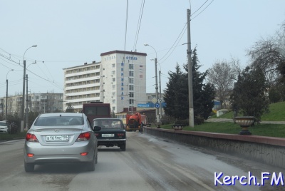 В Керчи 27 марта коммунальщики мыли ограждения и парапеты на улице Свердлова. Рабочий находился на дороге, не соблюдая технику безопасности и был без оранжевого жилета, - сообщает корреспондент Керчь.ФМ