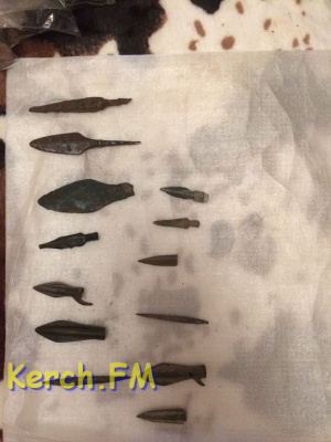 Сотрудники Службы в г. Джанкое провели обследование дома гражданина Российской Федерации, жителя г. Армянска. В доме обнаружены более 400 предметов старины, в т.ч. металлический нож, штык-нож, сабля, ударник, металлические наконечники, затворы, наконечники от стрел, монеты, пуговицы. Специалисты предполагают, что часть находки относится к холодному оружию.