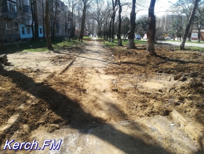 Горы земли под окнами керчан убрали, но тротуар не восстановили