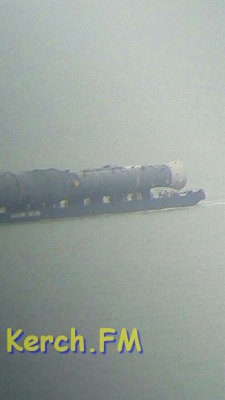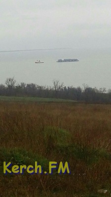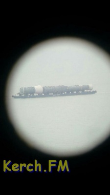 Керчане заметили, что через керченский пролив проплывает баржа с непонятным грузом. Свои фотографии они прислали в редакцию Керчь.ФМ