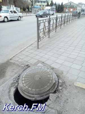 Напомним, этот вопрос керчане поднимали еще в начале марта, а люк продолжает проваливаться еще больше.