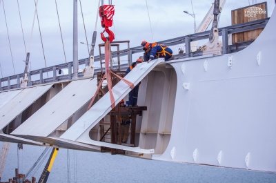 Обтекатели монтировались непосредственно с арочного пролета, в безопасном для судоходства режиме, без каких-либо ограничений для движения судов по Керчь-Еникальскому каналу.