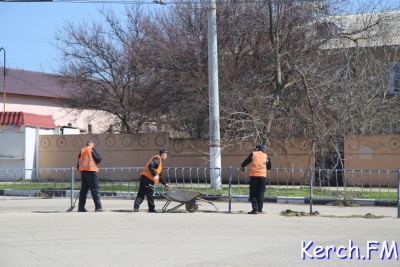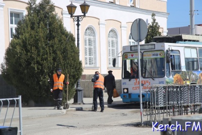 В Керчи 5 апреля, на железнодорожном вокзале, работали осужденные. Как передает корреспондент Керчь.ФМ, мужчины чистили обочины от земли в специальных оранжевых жилетах. После складывали ее в мешки, которые грузили в самосвал.