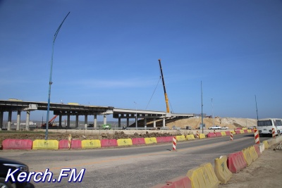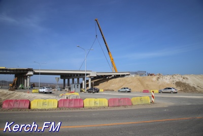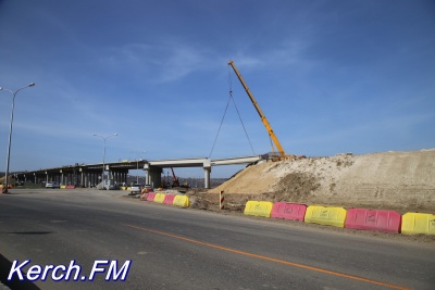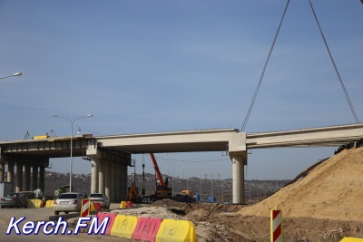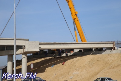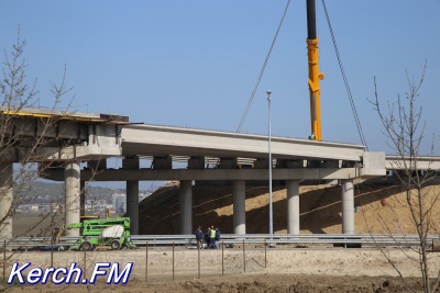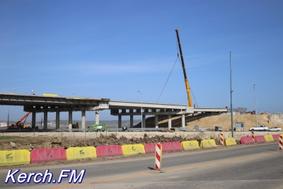 В Керчи соединяют последний пролет путепровода, который находится над автоподходами к Крымскому мосту. Как передаёт корреспондент Керчь.ФМ, уже уложены почти все балки.
