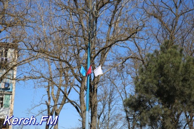В Керчи столбы вдоль дороги украсили разноцветными флажками