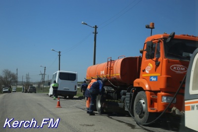 В Керчи на перекрестке Куль-Обинское - Индустриальное шоссе 9 апреля снимают асфальт на проблемных участках дороги. Как передает корреспондент Керчь.ФМ, отработанный асфальт с помощью спецтехники сразу складывают в самосвал, а не на обочины.