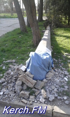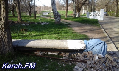 Напомним, около тротуара в Керчи разваливается столб.