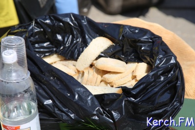 Для ветеранов и всех присутствующих организовали солдатский привал, где керчан кормили кашей и угощали чаем.
