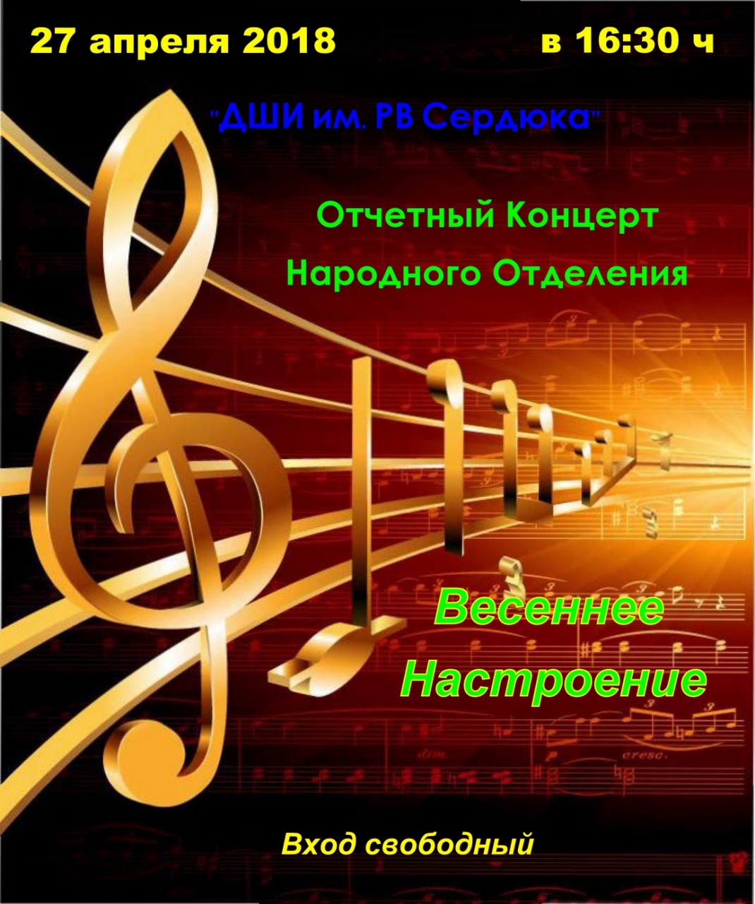 В Керчи 27 апреля в ДШИ им. Сердюка состоится отчетный концерт народного отделения «Весеннее настроение». Начало в 16.30. Администрация школы приглашает всех желающих. Вход свободный, - передает Керчь.ФМ.