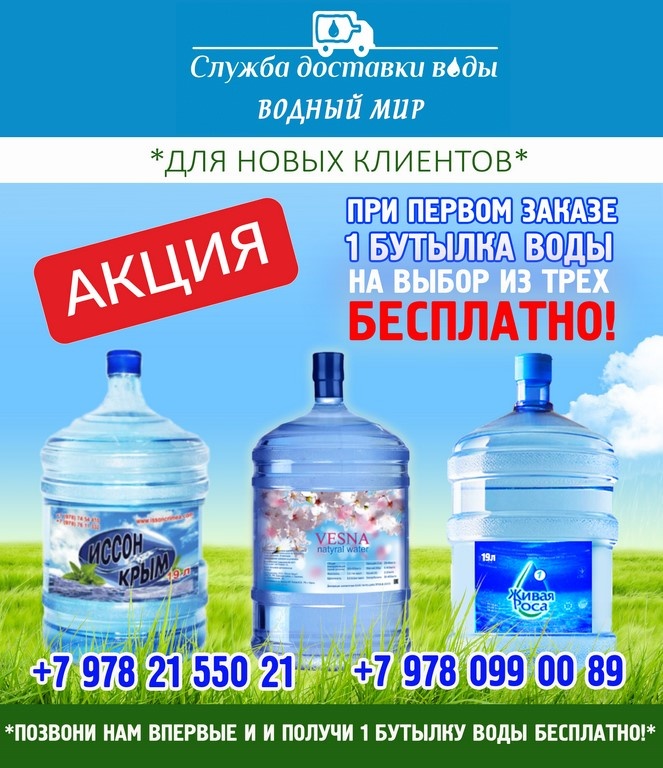 Позвони нам в первый раз и получи 1 бутыль воды бесплатно!