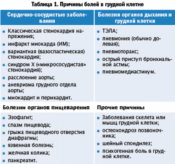 Поскольку боль в груди имеет разный характер, она может быть вызвана одним из следующих опасных и серьезных заболеваний: