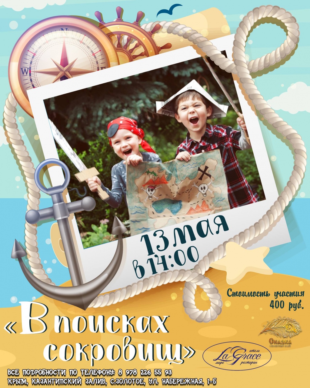 Пока родители будут отдыхать на берегу казантипского залива и наслаждаться видами сидя в ресторане La Grace, Ваши дети буду увлекательно и незабываемо проводить время!