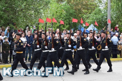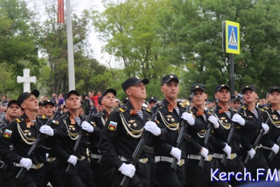 В параде принимали участие юнармейцы, бойцы Черноморского флота, железнодорожные войска, полк радиационной, химической и биологической защиты, представители ракетных войск, рота МЧС и другие.