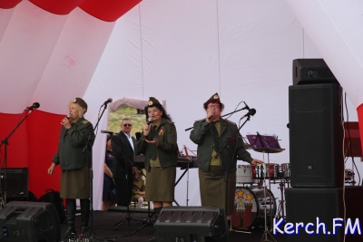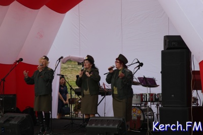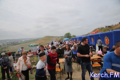 На горе Митридат продолжился концерт с выступлением вокалистов города. Рядом расположились столы и палатки, в которых можно было приобрести еду.