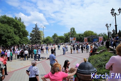 В Керчи 15 мая перед прямым включением с торжественной части открытия Крымского моста на площади Ленина выступили творческие коллективы Крыма и Керчи. На сцене играла скрипка, танцевали и пели, - передает Керчь.ФМ.