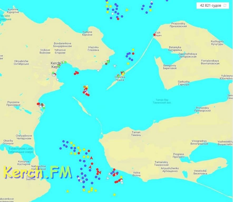 С семи часов утра морские суда перестали проходить под Крымским мостом. Согласно данным АИС десятки судов скопились на якорных стоянках у входа в пролив, что со стороны Азова, что со стороны Черного моря, - передает Керчь.ФМ.