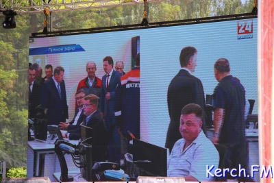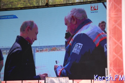 В Керчи 15 мая на площади Ленина на специальном экране показали прямое включение с торжественной части открытия Крымского моста. Президенту России Владимиру Путину показали диспетчерский пункт, а затем подвели к мостоотрядам, - передает Керчь.ФМ.