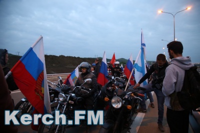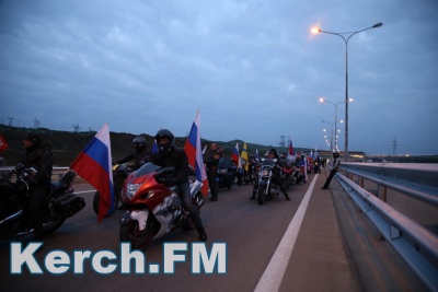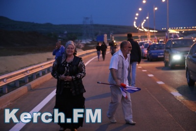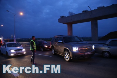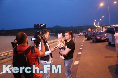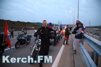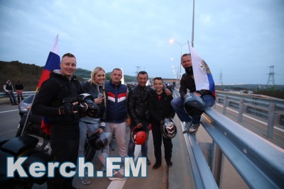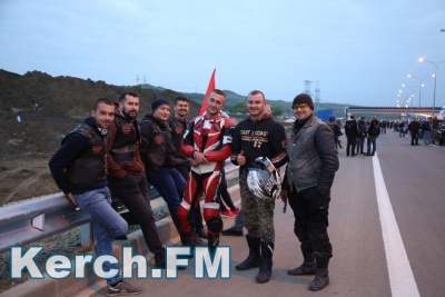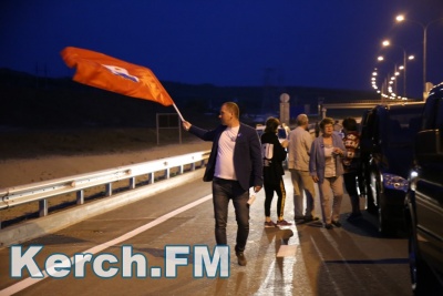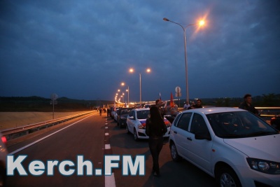Колонна со стороны Тамани выдвинулась несколько раньше. В Керчи движение началось около 5.40. Машины и мотоциклы проехали по мосту, автоподходам, развернулись и поехали обратно. Вся дорога - туда и обратно заняла около 50 минут. Также ехали и автобусы, и велосипедисты