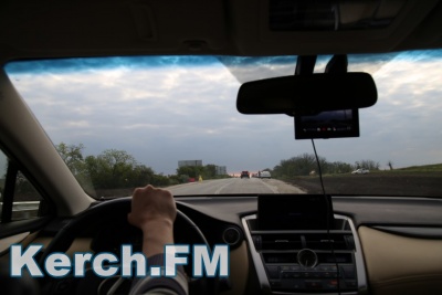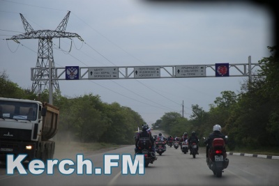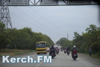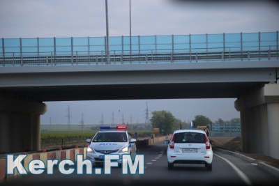 Чтобы проехать к мосту колонна через Чкалова двинулась на выезд из Керчи. Далее - указатель на автоподходы. Перед постом ДПС, который находится на самих автоподходах колонна остановилась и ждала назначенного времени - 5.30.