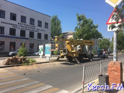 В Керчи 23 мая с утра на улице Пирогова рабочие пилили деревья. На 11 часов специалисты спилили только одно дерево. Перед работами были установлены предупреждающие дорожные знаки, - передает Керчь.ФМ