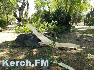 В редакцию Керчь.ФМ обратился постоянный читатель, который рассказал, что сегодня, 29 мая, днем возле детской площадки «Аленка» упала громадная ветка. По его словам, через 5 минут упал металлический кожух с фонаря на площади Ленина.