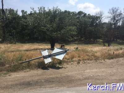 В редакцию Керчь.ФМ постоянная читательница прислала фотографии и сообщила, что на выезде из Керчи, около аэропорта, неизвестные сломали дорожный знак.