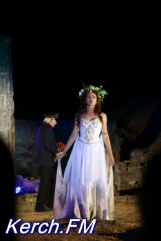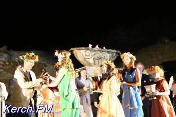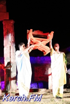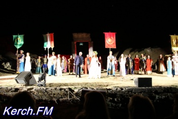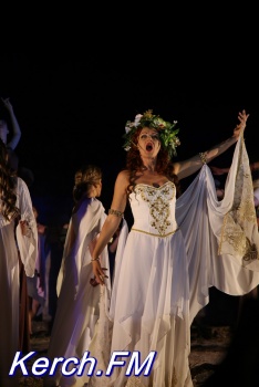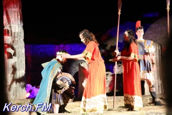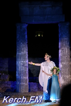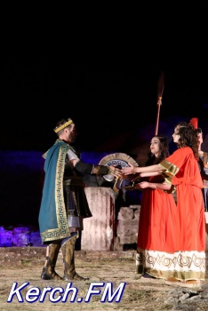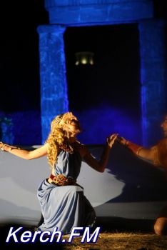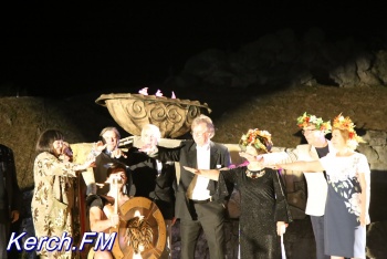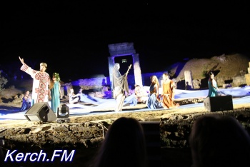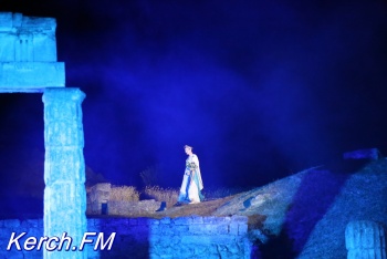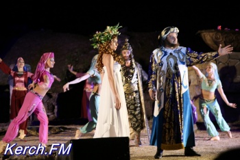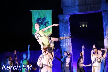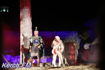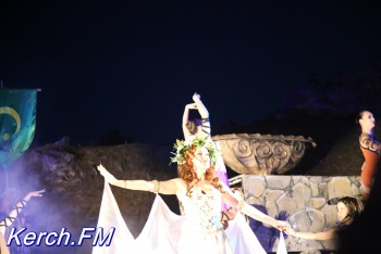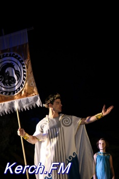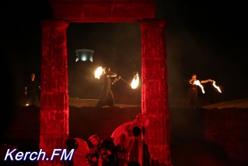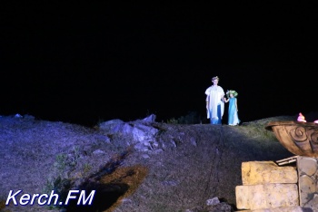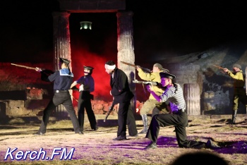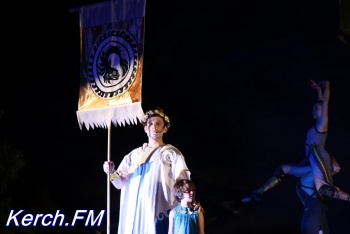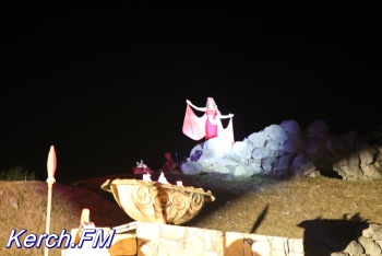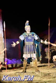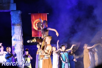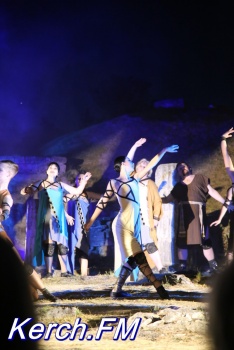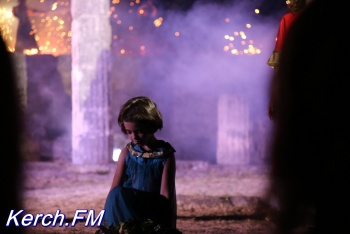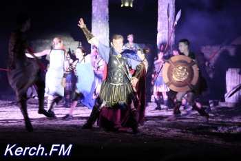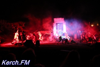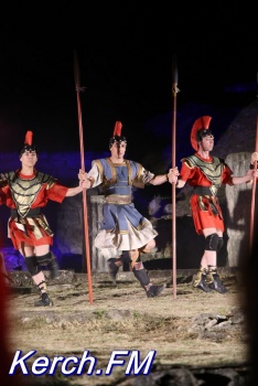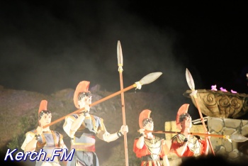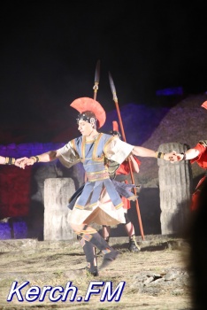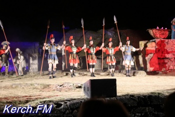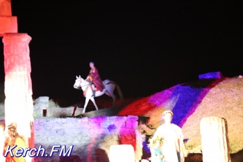 В представлении зрителям рассказали об истории Керчи. Как всегда, на сцене были артисты, танцоры, вокалисты. Но в этом году к спектаклю привлекли и животных - лошадь и пони участвовали в представлении.
