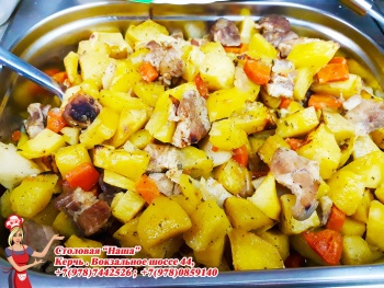 мясо и курица, компоты и соки. Душистая и всегда свежая выпечка.