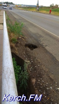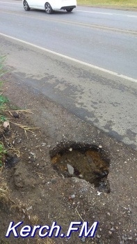 В Керчи на обочине дороги на Нижнем Солнечном провалился асфальт. Глубока яма диаметром около тридцати-сорока сантиметров увеличивается в размерах с каждым днем. Фото в редакцию Керчь.ФМ прислали постоянные читатели.