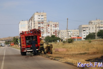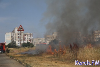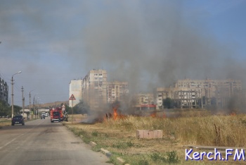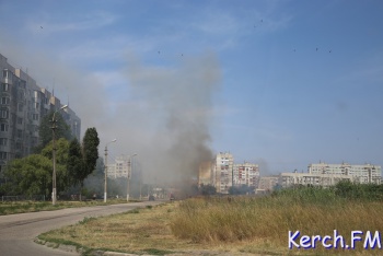 В Керчи 22 июня на Блюхера горела сухая трава. На месте пожара работали сотрудники МЧС.