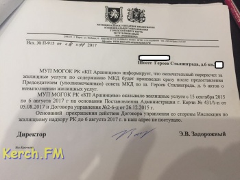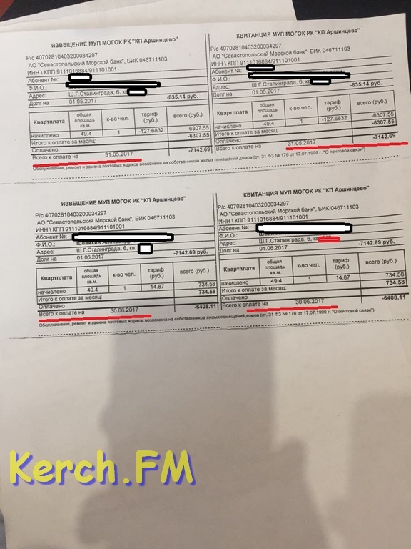 Жители дома 6 по шоссе героев Сталинграда уже больше года добиваются адекватного перерасчета в «КП «Аршинцево». Сначала они требовали уменьшить тариф, так как где-то не работал лифт, где-то никто не убирал, а деньги за это брал. Но после уменьшения тарифа, на прощанье КП «Аршинцево» накрутило так, что теперь никто не может разобраться. В любом случае, крайний в этом споре известен почти всегда. Об этом редакции Керчь.ФМ рассказали пенсионеры, проживающие по этому адресу.