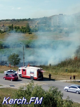 В Керчи 30 июня днем загорелась трава и камыш на озере около Ворошилова. Фото и видео в редакцию Керчь.ФМ прислала постоянная читательница. Керчанка отметила, что пожарные приехали оперативно и сразу начали тушить огонь.