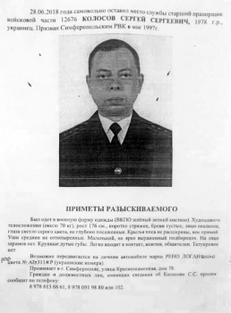Как сообщается в ориентировке, Колосов покинул воинскую часть 28 июня этого года. Как уточнили РИА Новости Крым в пресс-службе МВД по РК, розыск старшего прапорщика продолжается.