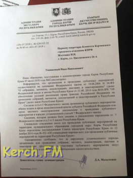 Анонсированный ранее митинг против повышения пенсионного возраста может не состоятся, так как администрация Керчи отказала в согласовании места и времени его проведения. Свой отказ за подписью замглавы администрации Мельгазиева городские власти мотивировали тем, что якобы в это же самое время в этом же самом месте будет какой-то организацией проводиться согласованное властями мероприятие. - предает Керчь.ФМ.